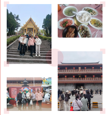 餐后漫步泰佛殿,鱼鳞瓦映着暖阳,足不出国便领略浓郁异国风情;驻足滨江长廊,远眺广济桥奇观,韩江碧波、古城墙韵致,皆让人沉醉。傍晚打卡开元寺与明清牌坊街,伙伴们并肩漫步、定格美好,在欢笑中结束首日旅程。